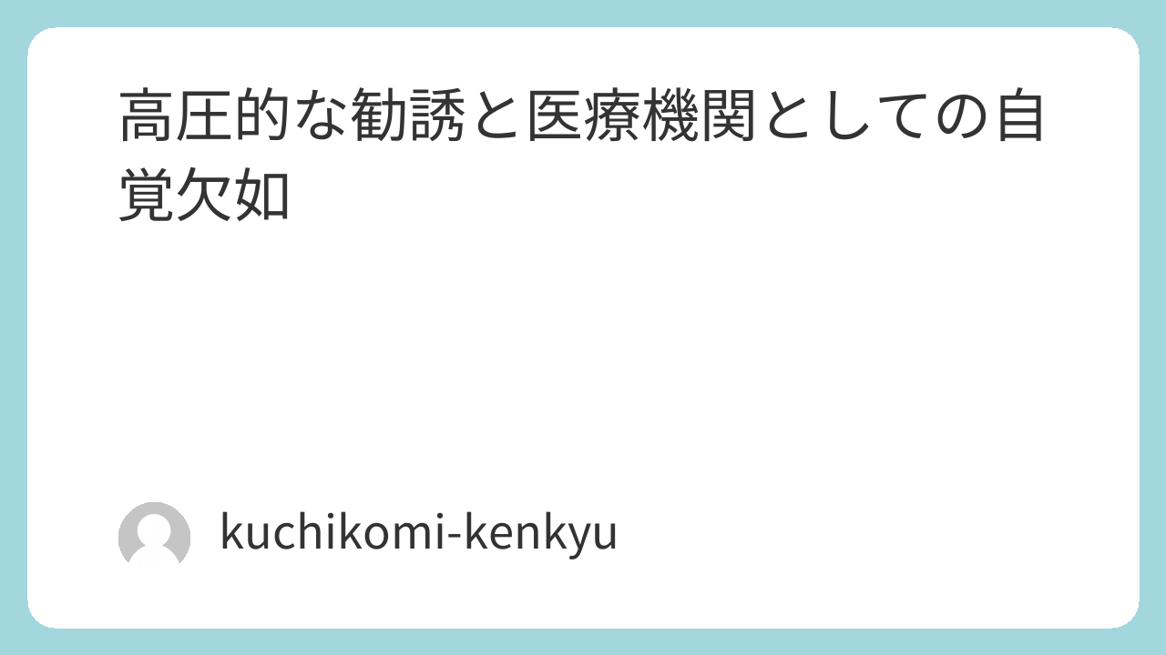 高圧的な勧誘と医療機関としての自覚欠如