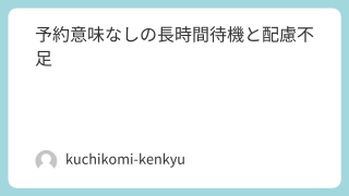 クチコミ研究® 待合室の混雑と治療拒否への不信感