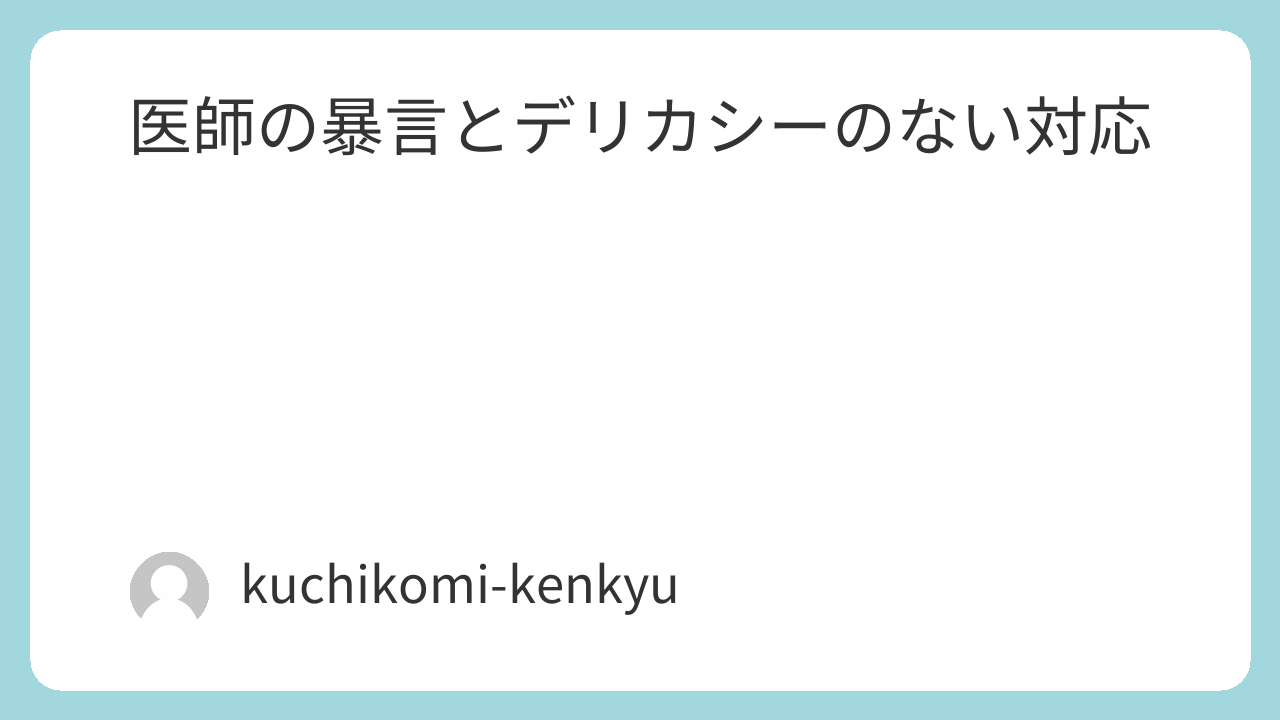 ある皮膚科に行った時の話です。ある日、私の手にウイルス性のタコができたことがありました。その病院の医者に診せたら「タコ男」というよくわからないあだ名をつけられました。正直むかつきましたが、それだけではなく「あんまり近づくとタコが移るぞ」という患者に対しての扱いとは思えない言動を取られてめちゃくちゃイラッとしました。こんな底意地の悪い医者に診察されたのかと思うと本当にはらわたが煮え繰り返る思います。その時、私もちょっと我慢できなくて「あなた、なんかちょっとうるさいですね」と反論したら医者としてのプライドを傷つけられたと思ったのか顔を真っ赤にして睨んできて本当に最悪のクリニックでした。